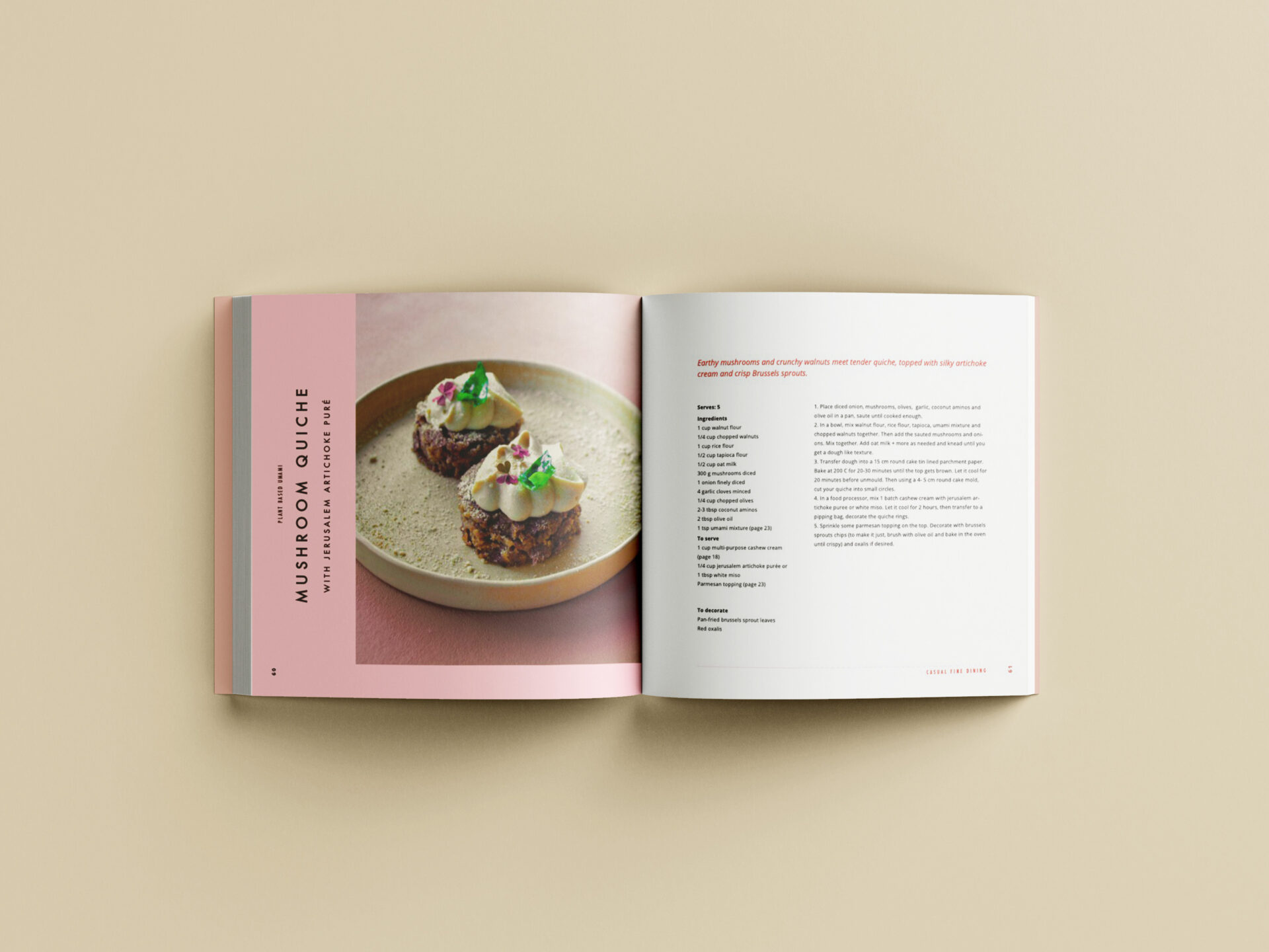 Inside, you’ll find a mix of casual comfort foods, elegant small bites, raw desserts, and gluten-free dessert creations, all crafted to showcase the richness and complexity of plant-powered cooking. Each recipe is designed to be approachable yet sophisticated, perfect for both professionals and home cooks who love experimenting with flavors and textures.